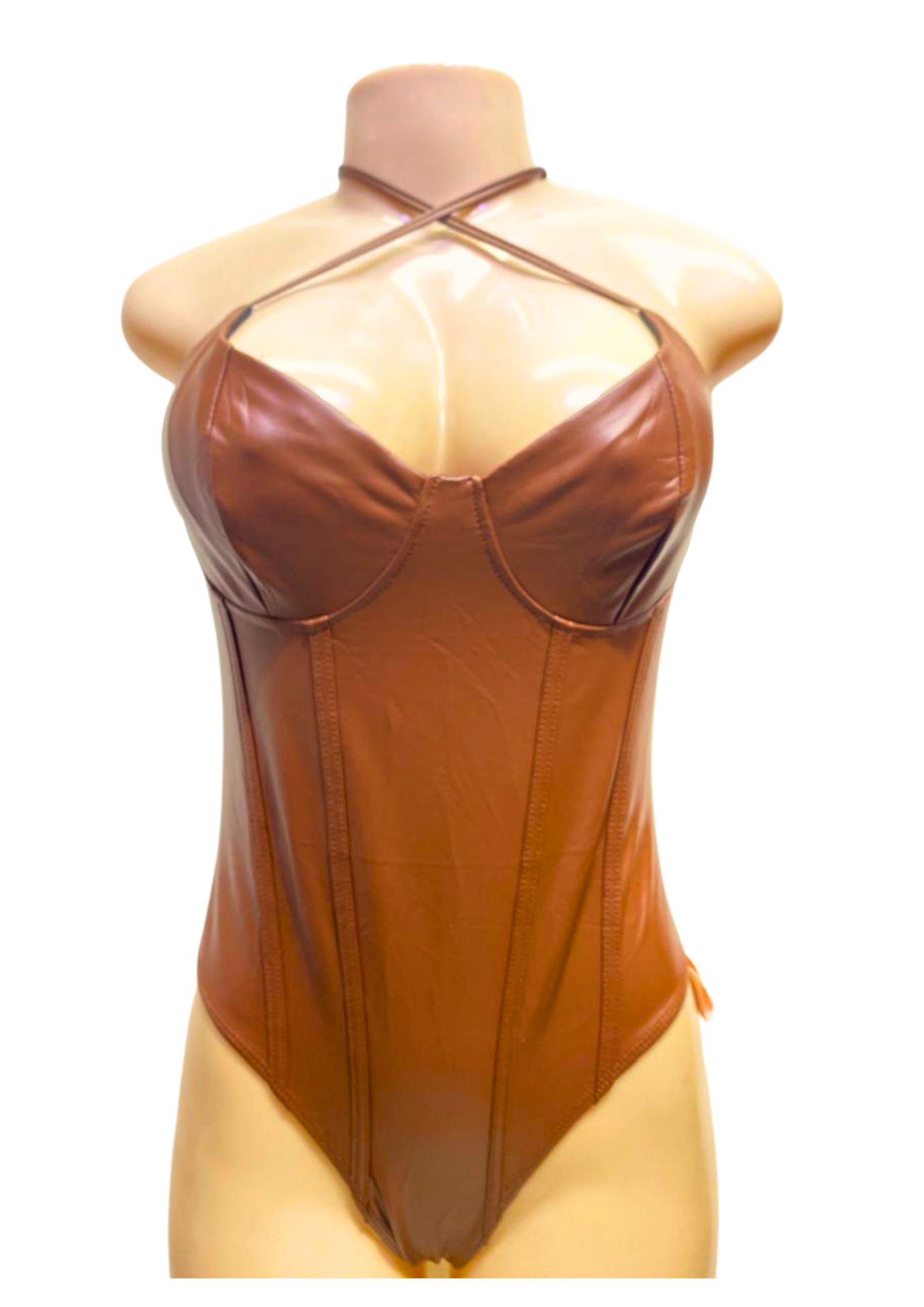 Body de Cuero Café, Nuevo ,Medidas 36cm de ancho y 74cm de largo, Marca SHEIN BAE, Talla TALLA UNICA