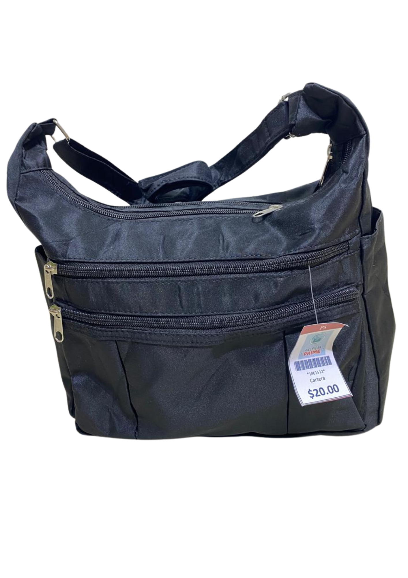 Cartera negra cruzada multifuncional , Medidas 36cm de ancho y 46cm de largo