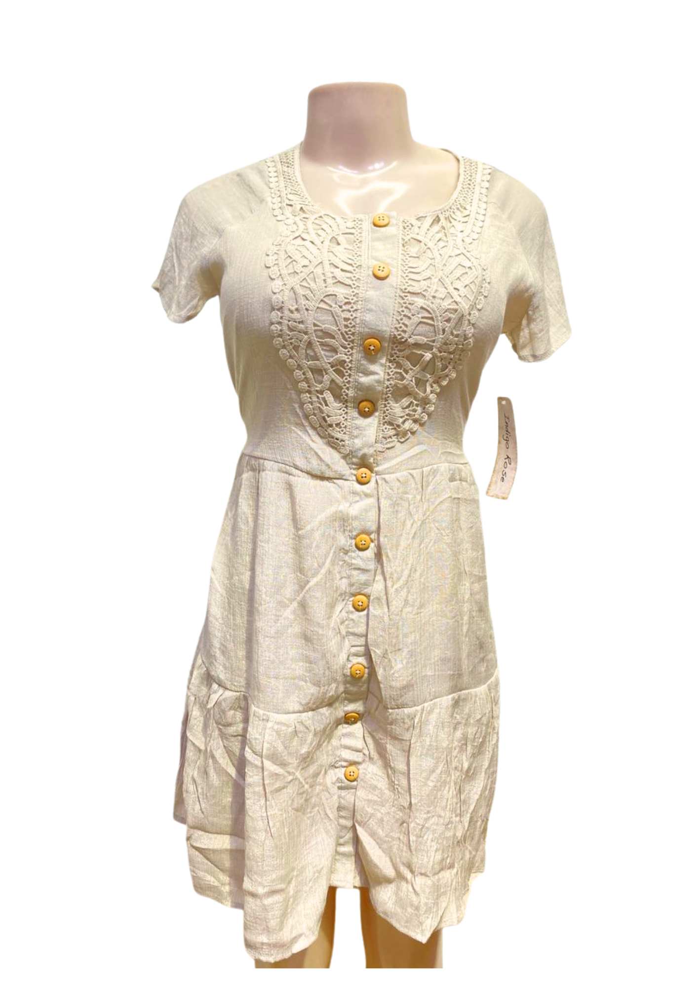 Vestido Beige ,Medidas 41cm de ancho y 91cm de largo, Marca INDIGO ROSE, Talla S