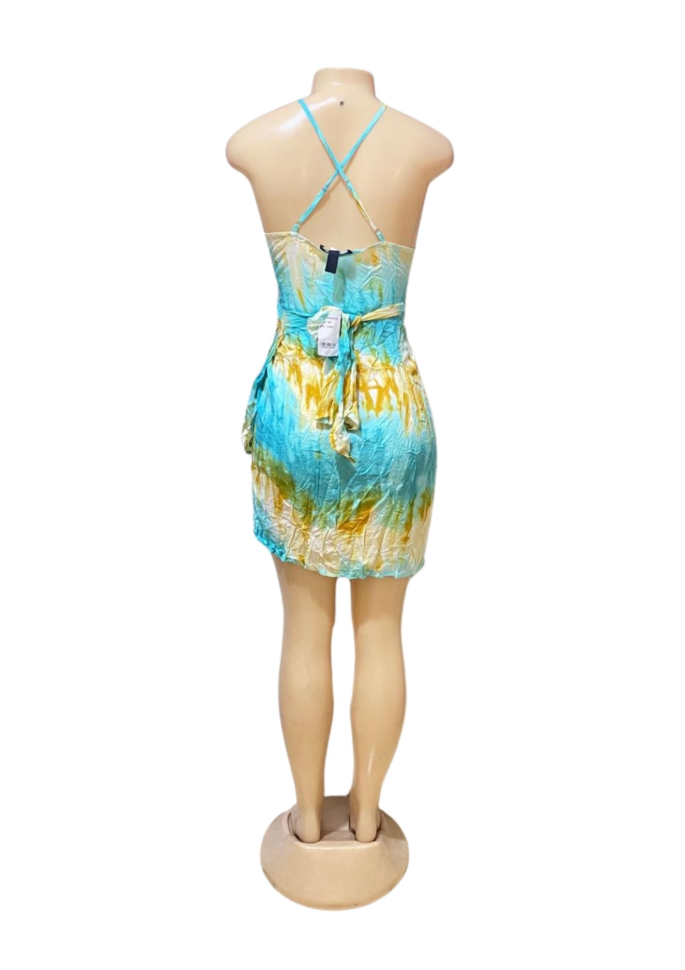 Vestido Celeste con Amarillo Nuevo, Medidas 48cm de ancho y 78cm de largo, Marca Sbetro, Talla L